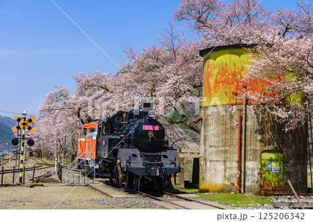 桜と蒸気機関車 若桜鉄道 鳥取県