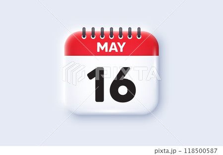 Calendar date 3d icon. 16th day of the month icon. Event schedule date. Meeting appointment time. 16th day of May month. Calendar event reminder date. Vector