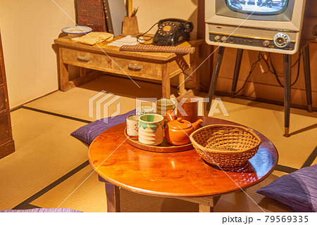 昭和レトロな家電が置かれた懐かしのモノクロ風景