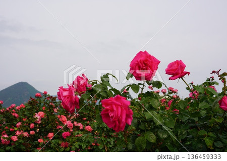 長野県坂城町のさかき千曲川バラ公園は山々に囲まれた千曲川のほとりに素晴らしいバラ公園があります。