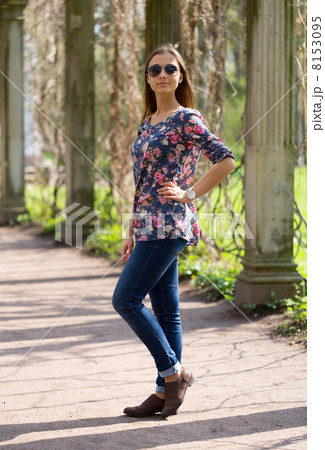portrait of a girl in full growth in jeans