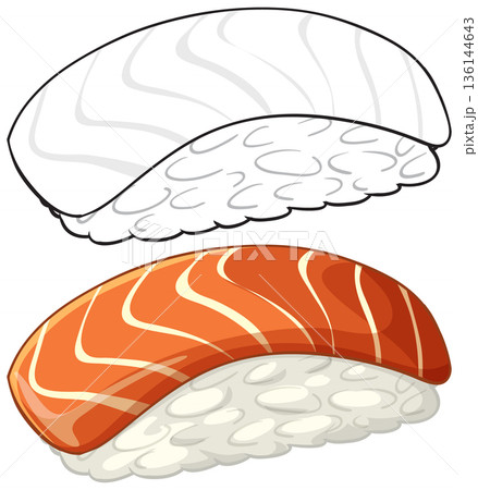 Vector Illustration of Salmon Nigiri Sushi and White Fish Nigiri