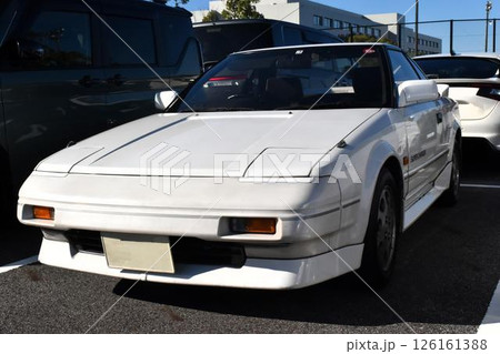 駐車場に停めた乗用車 (トヨタ・MR2 初代後期型)