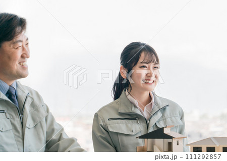まちづくり・電気工事・電力会社・建築士・設計士・エンジニア・保守・点検・建設・建築・作業着姿の男女