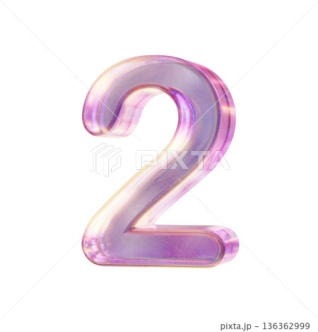Purple pink iridescent glass font Number 2 TWO 3D