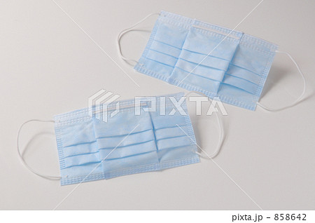 水色の背景にマスク