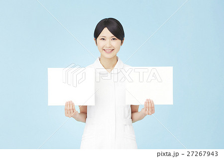 二枚のメッセージボードを持つナース