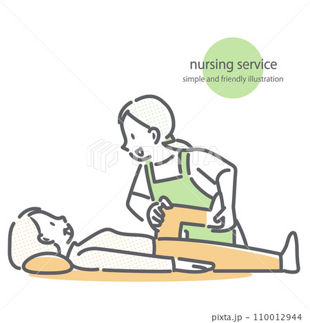 女性職員にリハビリを受けるシニア女性 シンプルでお洒落な線画イラスト