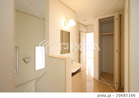 住宅 2階ホールに洗面化粧台と収納を設置したイメージ 施工例