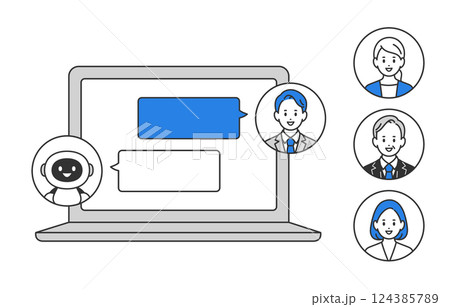パソコンでAIとチャットするビジネスパーソン(差し替え用のアイコンセット)【人物ベクターイラスト】