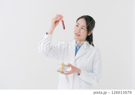 試験管を持つ白衣の女性