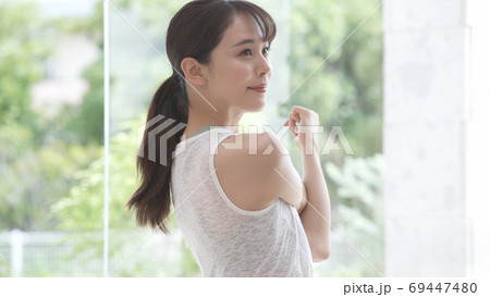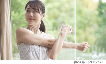 ストレッチをする若い女性