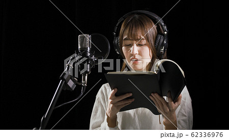 アフレコをする若い女性