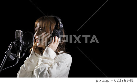 ボーカルのレコーディングをする女性