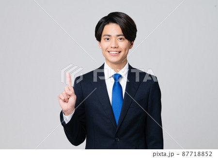 白背景の1番のポーズをする若いビジネスマンのポートレート