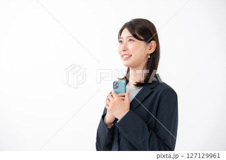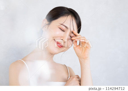 白いドレスを着た美しいアンニュイな表情の女性 美容・ビューティー 美白や艶、スキンケア 笑顔