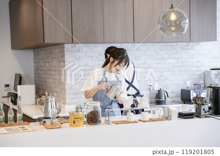カフェで働く店員 女性 男性