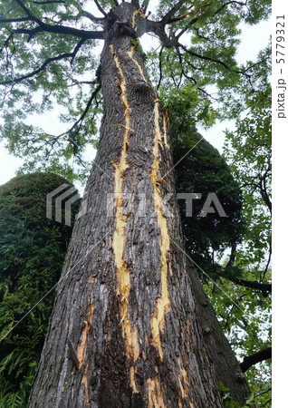 落雷(大木に直撃雷) 突然天と地が裂けるほどの大きな音がしました。