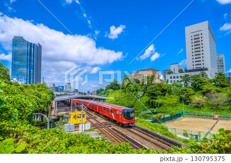 日本の東京都市景観 四ツ谷駅を出発した東京メトロ丸ノ内線新型車両2000系などを望む(C)