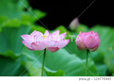 もう少しで開花しそうな大賀蓮の蕾と開花した大賀蓮