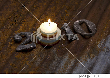 金属プレートとロウソクで作った2010の文字