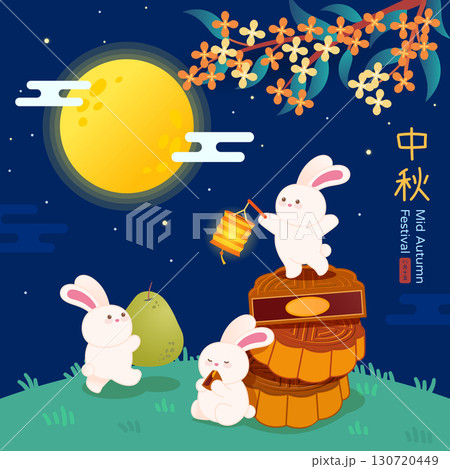 Mid-Autumn Festival, full moon and rabbits.