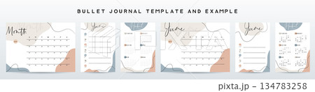 六月空白月曆子彈筆記模板,抽象色塊背景設計,記事本、筆記本、待辦事項、備忘錄、日記素材圖片