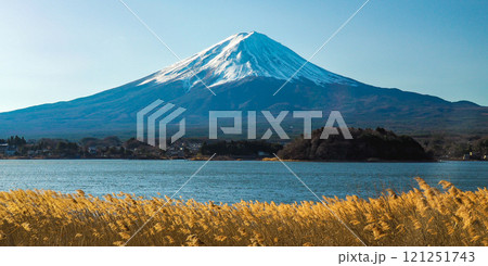 河口湖畔大石公園より眺める2024年1月1日の富士山