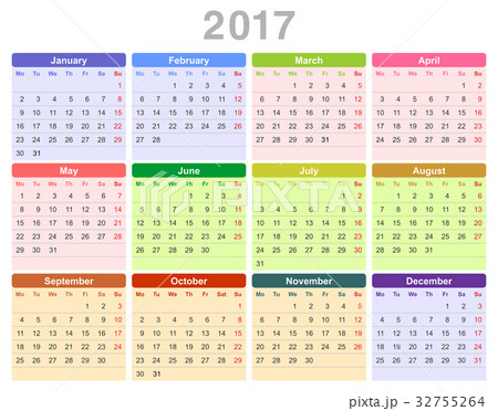 2017 year annual calendar (Monday first, English)
