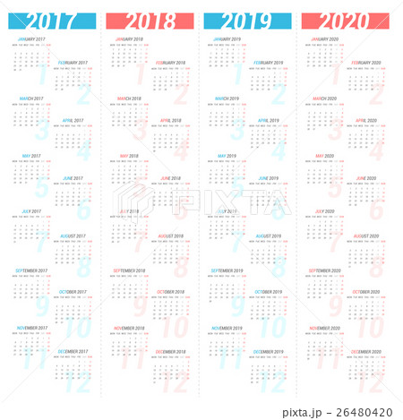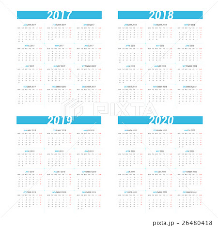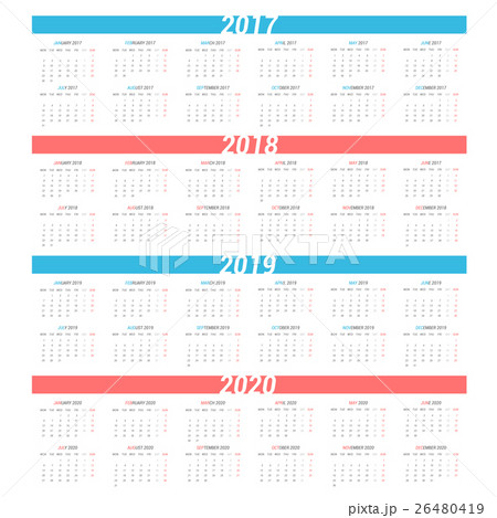 Calendar 2017 - 2020. Week starts from Monday.