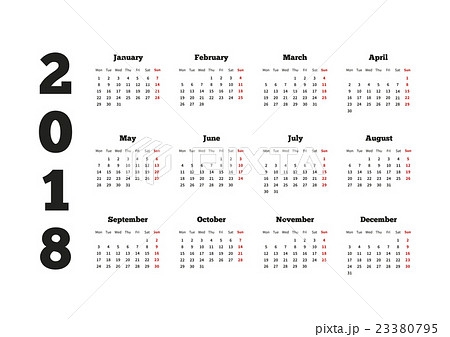 2018 year simple style text calendar. Week starts