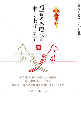 戌年 犬と年号(2018)、賀詞 年賀状イラスト