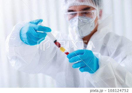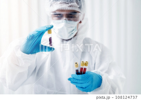 Doctor or Medical staff collect blood samples from patients infected with the coronavirus or COVID-19. for examination in the lab. Pandemic Coronavirus, COVID-19.