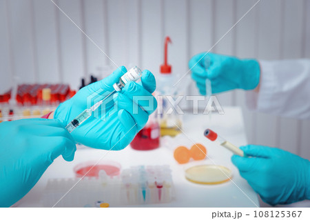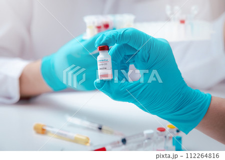 Researcher test vaccine sample in the laboratory. Researcher is inventing vaccines to treat COVID-19 virus.
