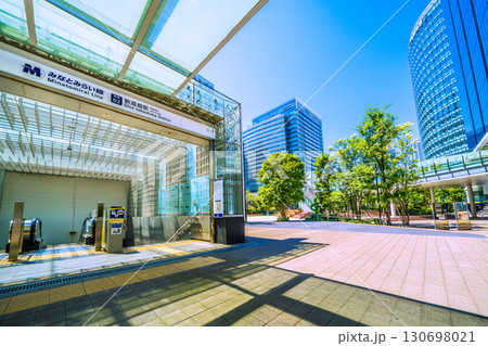 日本の横浜都市景観 みなとみらい線 新高島駅前のオフィス街などを望む=23日