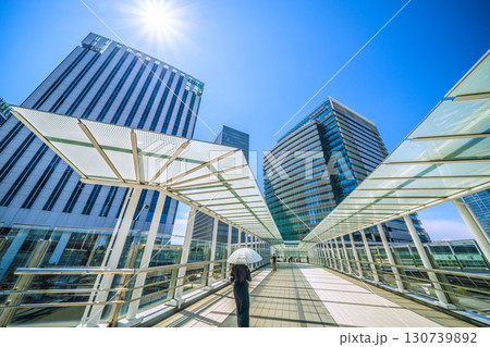 日本の横浜都市景観 新時代へ…新高島駅前の京急グループ本社などのビル群や歩道橋などを望む…希望の光