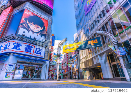 日本の東京都市景観朝の渋谷センター街などを望む。外国人観光客で賑わう渋谷だが朝の人影は少ない…=8日