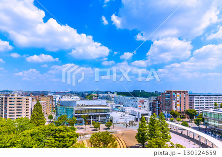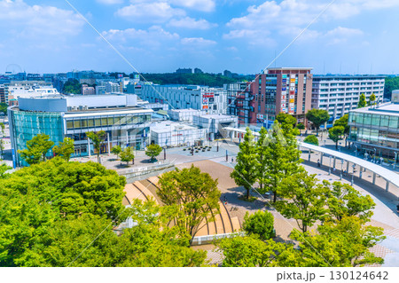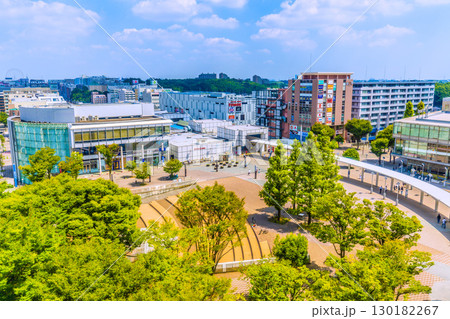 日本の横浜都市景観 地下鉄 「センター南駅」前などを望む