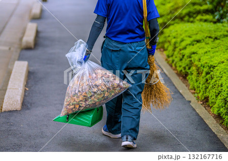 日本の横浜都市景観 環境美化作業をする高齢者…これからの時代、高齢者も働かなくてはならないのか…