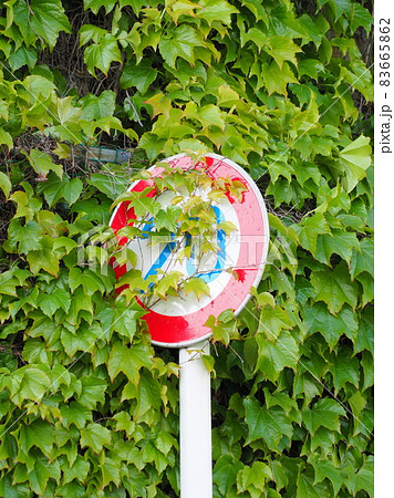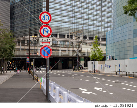 街角の風景。道路標識、20キロ速度制限と駐車禁止。