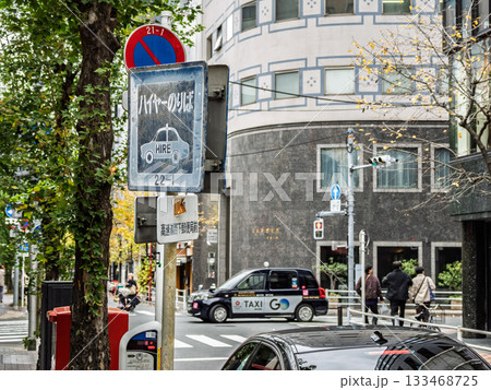銀座のタクシー乗車禁止地区にあるハイヤー乗り場の標識(ハイヤー乗り場107号)