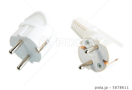 Common cheap plastic AC power wall outlet. German circular recess socket with two round holes for 2 pins europlugs types C, E and F. Not grounded European white electrical socket CEE 7 against wall
