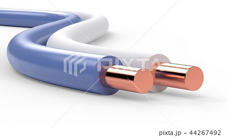 Pair of electrical cable wires with white and blue insulation isolated 3d illustration