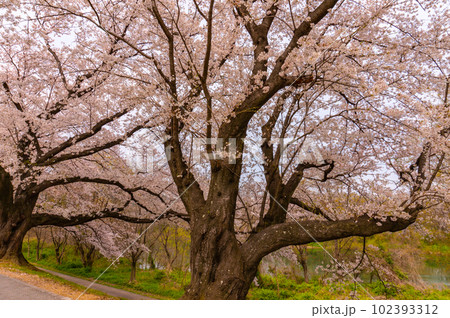 【イメージフォト】背割堤 ハートマークと満開の桜