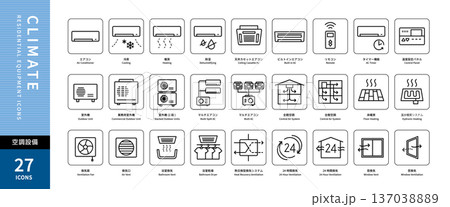 空調設備アイコンセット 住宅用設備ベクター(27点)