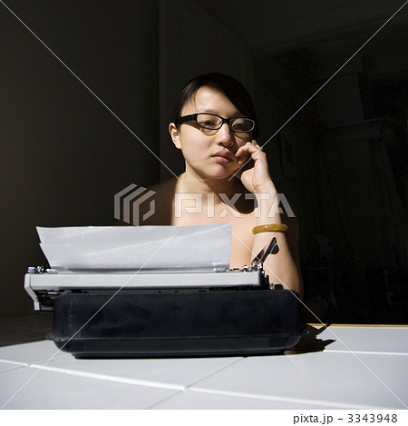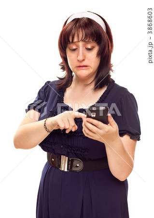 Reluctant Young Caucasian Woman Texting On Mobile Phone