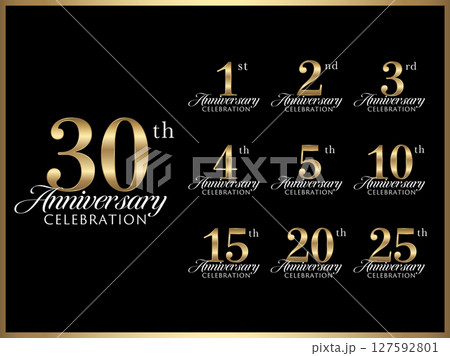周年数字と記念日お祝い用のロゴデザインのゴールドバナーセット