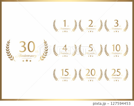 周年数字と記念日お祝い用の月桂冠デザインのゴールドバナーセット