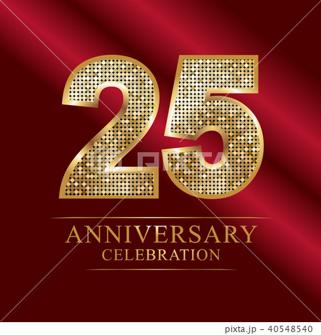 25 years anniversary vector icon, logo. Design element with golden ribbon