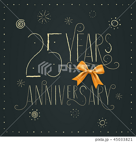 25 years anniversary vector icon, logo. Design element with golden ribbon